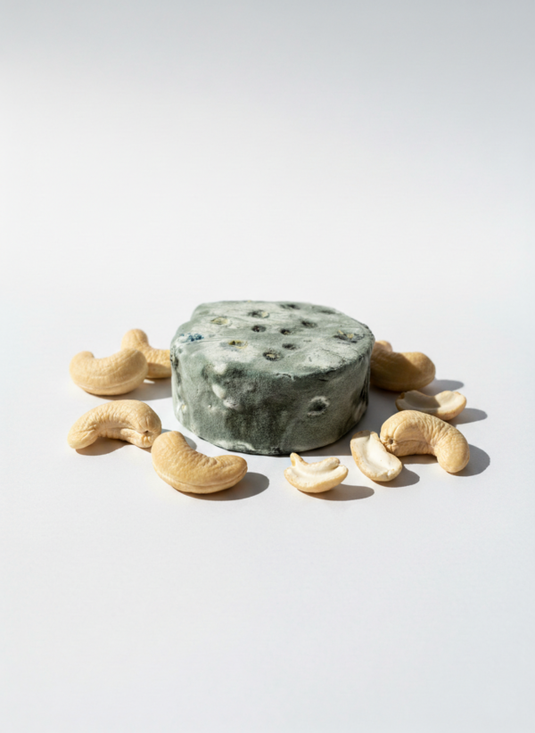 Gli anacardi hanno il grasso naturale più simile al burro di formaggio vero. La soia crea texture granulosa. Le mandorle sono troppo dolci. Gli anacardi, una volta fermentati con muffe nobili, sviluppano quella cremosità densa e quel sapore umami che rende questo Roquefort indistinguibile dall’originale in una degustazione alla cieca.
